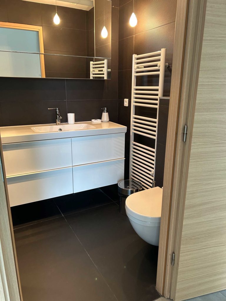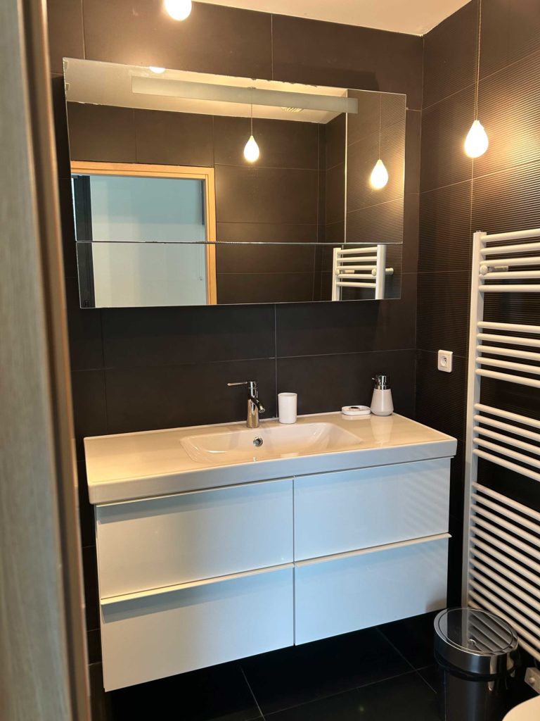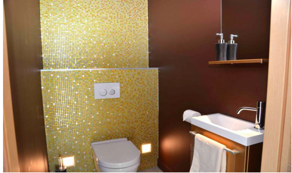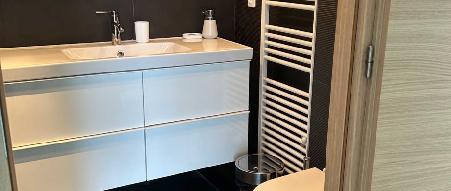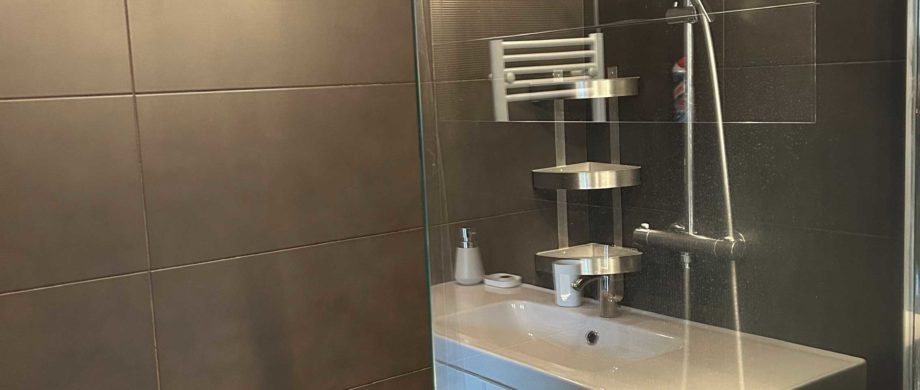 Salle d’eau privative avec douche à l’italienne, WC suspendu, chauffe serviette, extraction par VMC, sèche-cheveux
